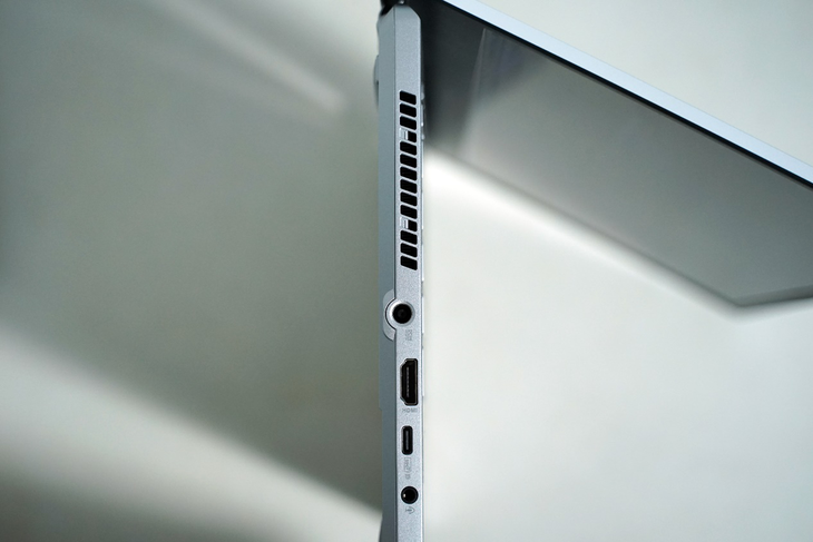 幻 14 的机身左侧配有一个 DC 电源接口,一个 10Gbps 的 USB Type-C 接口,一个 HDMI 接口,一个 3.5mm 耳机/麦克风二合一接口。