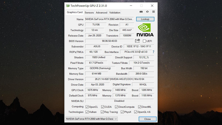 1,GeForce RTX 2060(Max-Q设计)光追显卡