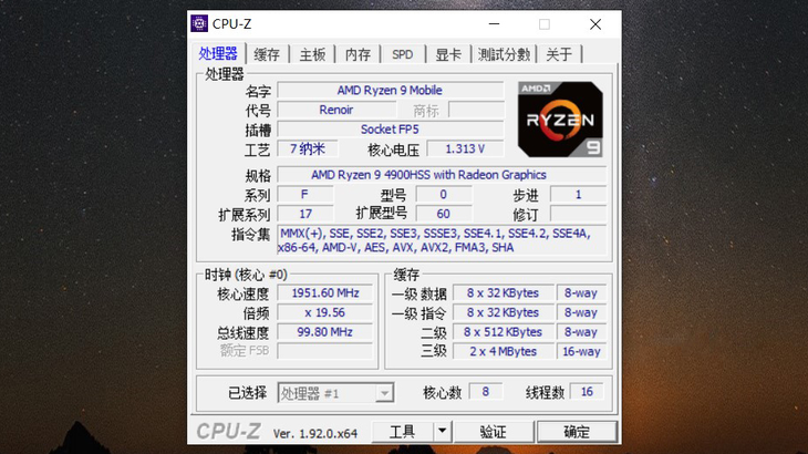 5,AMD锐龙9 4900HS八核处理器