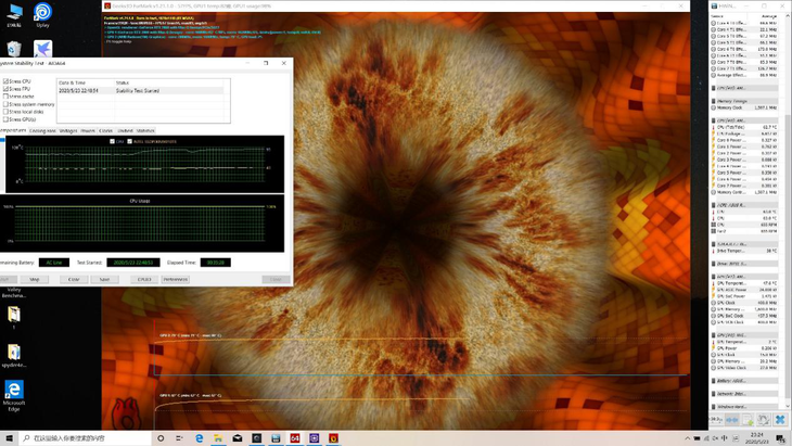 接下来我们加入甜甜圈,同时将 CPU 和 GPU 满载,CPU 的温度保持在 95 度,GPU 的温度则来到了 88 度。