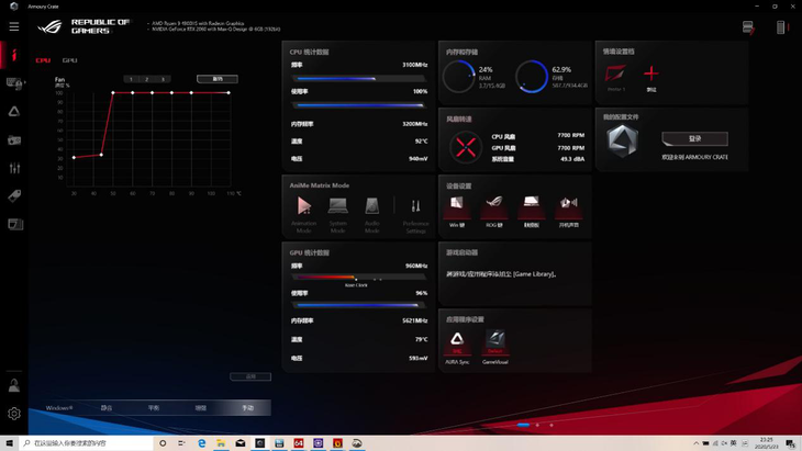 我们通过 ROG Armoury Crate 工具将两个风扇的手动转速调至 7700 转,此时达到了风扇的高转速,也就是最大风力。