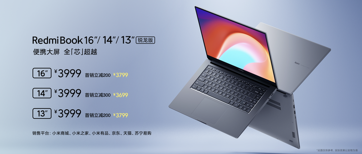 RedmiBook 16锐龙版R5/16GB/512首销优惠200元,到手价3799元。RedmiBook 14Ⅱ锐龙版R5/16GB/512首销优惠300元,到手价3699元。RedmiBook13锐龙版R5/16GB/512首销优惠200元,到手价3799元。延续了RedmiBook一贯厚道的定价策略,首销价非常诱人,4000元价位段非常值得推荐的产品。5月26日16:30开始接受预订,6月1日0点全网首卖。用户可以在小米商城、小米之家、有品、小米京东/天猫/苏宁旗舰店等渠道进行预约。