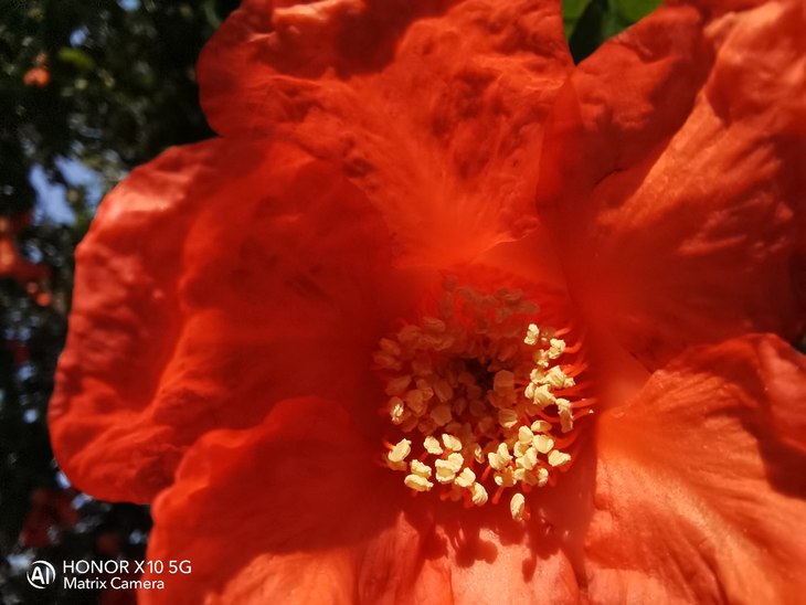 荣耀X10的微距镜头可以将微小世界呈现在镜头下,充分满足我们的好奇心。上图使用荣耀X10微距模式拍摄的照片,原本需要我们凑近了仔细查看才会勉强看清楚的花蕊,在微距镜头下竟是如此清晰可见,而且这并不是盛开很大的如月季一样的鲜花,仅仅只是一朵还不到硬币大小的石榴花。而且在拍摄过程中,只需要近距离靠近拍摄物体就可以实现快速精准的对焦,这点很难得。