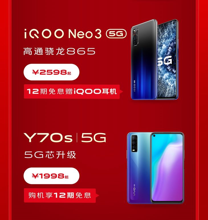 不仅如此,vivo近日发布的另一款青年潮品Y70s也将加入火爆促销活动之中。Y70s搭载Exynos880 5G处理器,后置4800万影像系统,支持SA&NSA双模5G组网,在为用户提供畅快的5G网络的同时,带来至美影像体验。活动期间,用户购机可享惊喜优惠价1998起,更有12期分期免息福利。