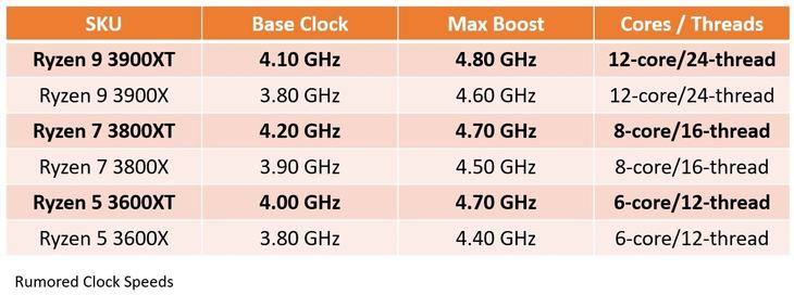 这三款XT后缀的锐龙处理器可以看作是现役锐龙处理器的提频版产品,它们的基础频率均不低于4.0GHz,锐龙9 3900XT的最大加速频率更是高达4.8GHz。