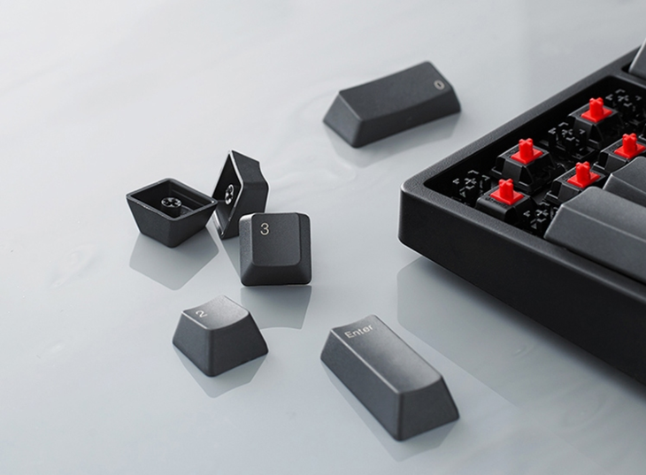 键帽的排列方式符合人体工学,从上到下为6排4阶排列设计,能够更贴合手指的运动轨迹,长时间打字也能获得舒适的体验。