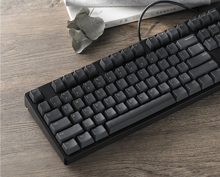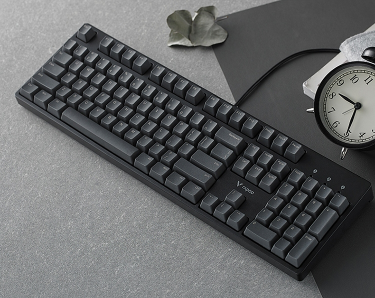雷柏V860机械键盘的加厚键帽采用PBT材质,拥有细微的颗粒触感,耐磨防打油。键帽字符采用镭雕技术,字体清晰耐磨,灰白色字体搭配深灰色键帽,更具质感。