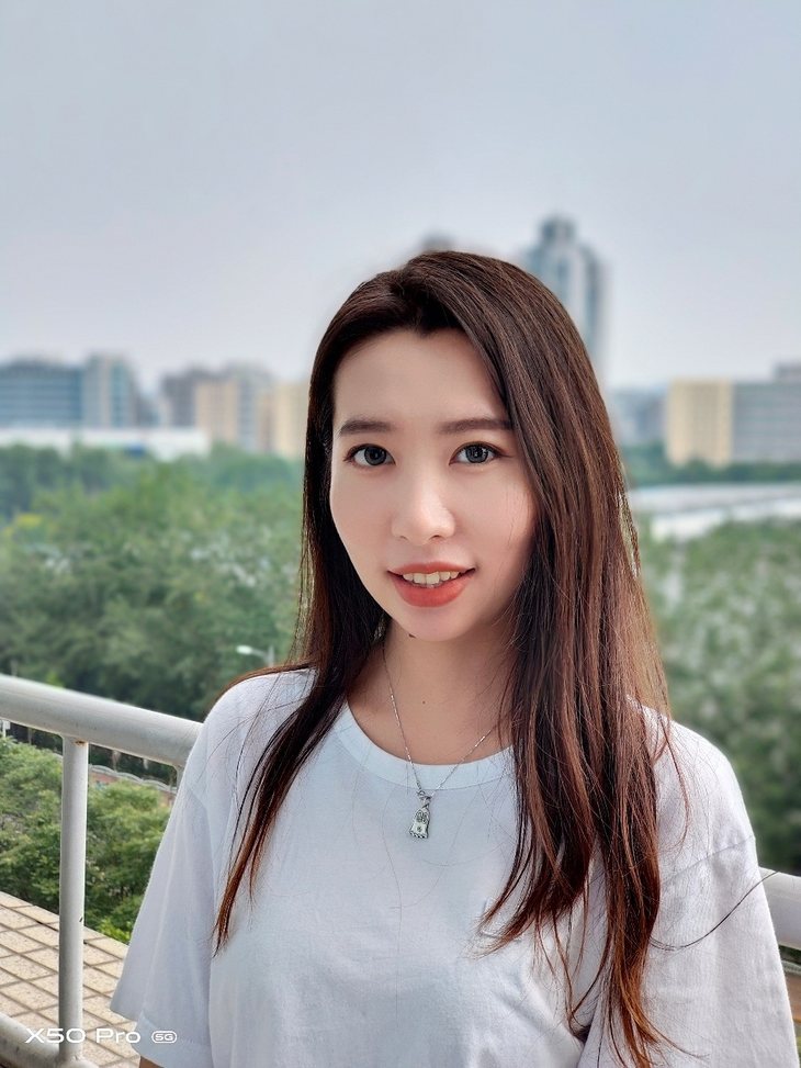 切换到人像模式,X50 Pro会自动调用50mm人像镜头,成像效果更加自然。人像模式下还能够实现面部区域的精细化调整,在各种复杂光源下仍旧能拍出好看的肤色。上面样张的肤色好看且自然,皮肤也保留了真实的质感,没有那种过度的涂抹感,样张对于头发边缘的虚化处理也很自然,样张整体效果非常好。