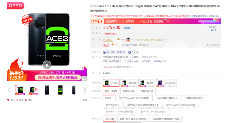 这次618活动让OPPO Ace2变得更具竞争力,到手价低只需3599元(8GB+128GB),还可以享受24期免息优惠,每天只需5块钱即可把OPPO Ace2带回家,想要购买的朋友别错过。
