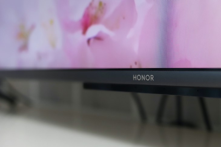 在外观方面,荣耀智慧屏X1和传统电视差别不大。荣耀智慧屏X1的正面非常简洁,包括底座都是简约设计。屏幕四边框都非常窄,屏占比高达94%,边框对视觉效果影响很小。