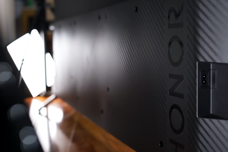 屏幕下方有个“HONOR”Logo,下方的呼吸灯可以显示当前状态。同时电源键也在这个Logo的区域。