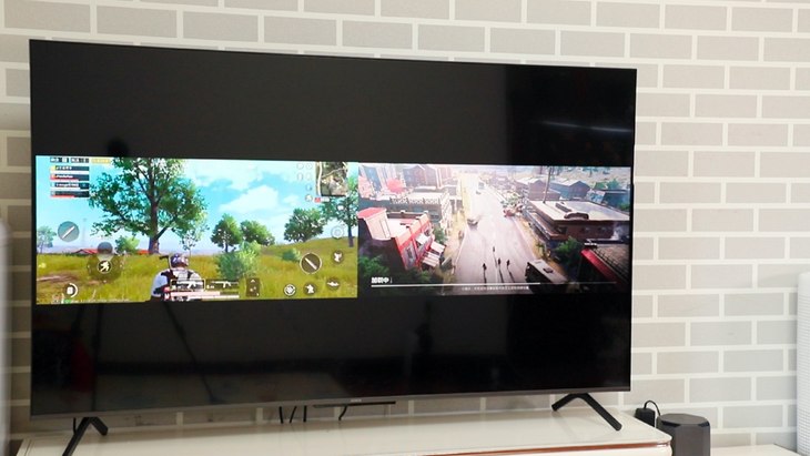 智慧双投能把两部手机的内容实时投射到一块智慧屏上。那比方说两个人打游戏,其他人就能更好的观战,这个要是将来商场线下做活动,大家一起打游戏,其他人在智慧屏上看直播就有用了。说不定将来还能四部手机一起投。