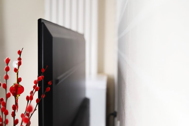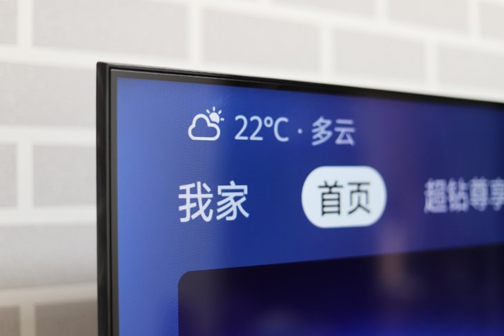 在正面视觉效果上,荣耀智慧屏X1的设计是非常成功的。屏幕左右上三边框为等宽设计,下边框的宽度控制得也很好,整体屏占比高达94%。超高的屏占比搭配65英寸大屏,日常观影能够获得非常不错的效果。