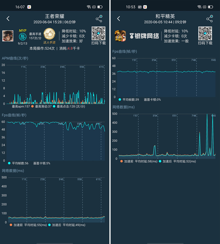 在强大性能支持下,手机游戏方面也有着出色的表现。通过游戏实测,在《王者荣耀》和《和平精英》两款游戏试玩中,OPPO Reno4 Pro都有着流畅的表现,《王者荣耀》平均帧率为56帧,而在高清画质设置下《和平精英》的平均帧率为39帧。