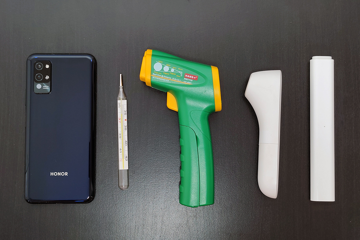下面我们就来看一下荣耀Play4 Pro的测温数据是否准确,我们选择了几种家中常见的测温设备,包括水银体温计、电子体温计、红外体温计以及红外温枪四种设备。