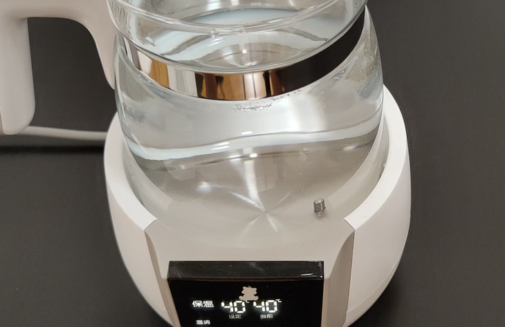 在40℃水温测试时,我们直接将接触式的温度计放入水中,其他三款温度计则测量水面的温度。我们可以看到,目前保温壶显示水温已经为40℃,使用测试设备进行测试,最终结果如下。