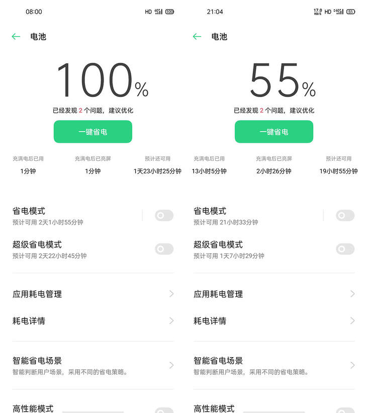 能够拥有这样的续航表现,当然离不开软硬件结合的优化。Reno4 Pro采用了一套全场景智能省电方案,在拍摄视频、夜间待机等场景都有针对性的优化,可以明显降低耗电量,提升续航表现。