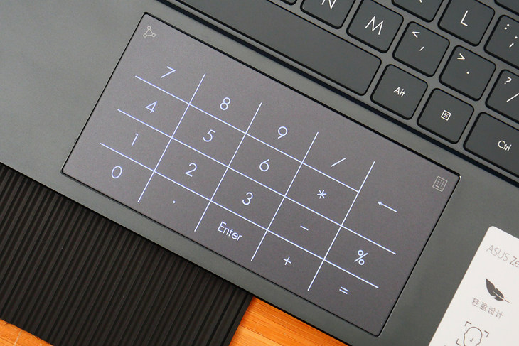 华硕灵耀14将小键盘集成在了触控板上,NumberPad 2.0集成了传统的触控板和数字键功能,通过这样的方式,华硕灵耀14在14英寸的机身内实现了全键盘的操作体验。