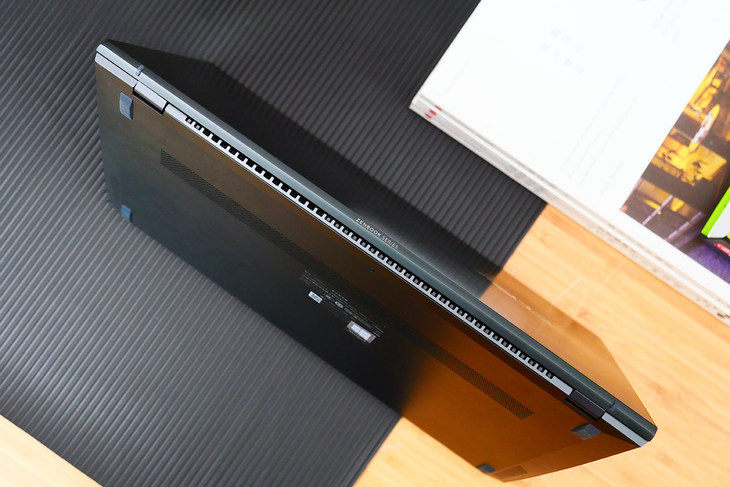 华硕灵耀14在机身上预留了散热开孔,配合机身内部的风扇,可以更快的将热量传导出去。