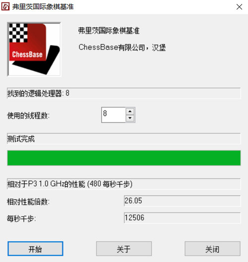 Fritz Chess Benchmark基准测试专注于CPU的运算能力测试,在多线程任务下,最终的成绩为12506每秒千步,相对性能倍数26.05。