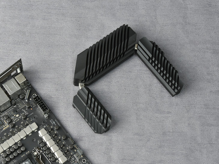这款主板设计了三个M.2插槽,并且均搭配有M.2散热片,能够助力M.2存储设备稳定运行不掉速。