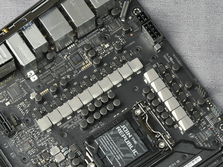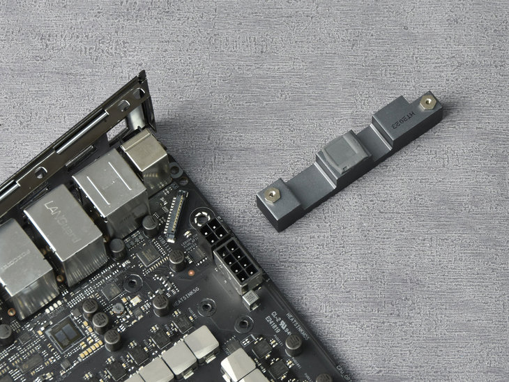 这款主板搭载了一颗Marvell AQtion AQC111C 5Gb网络芯片。由于该芯片的发热量比较大,华硕还为其加装了一块散热片。
