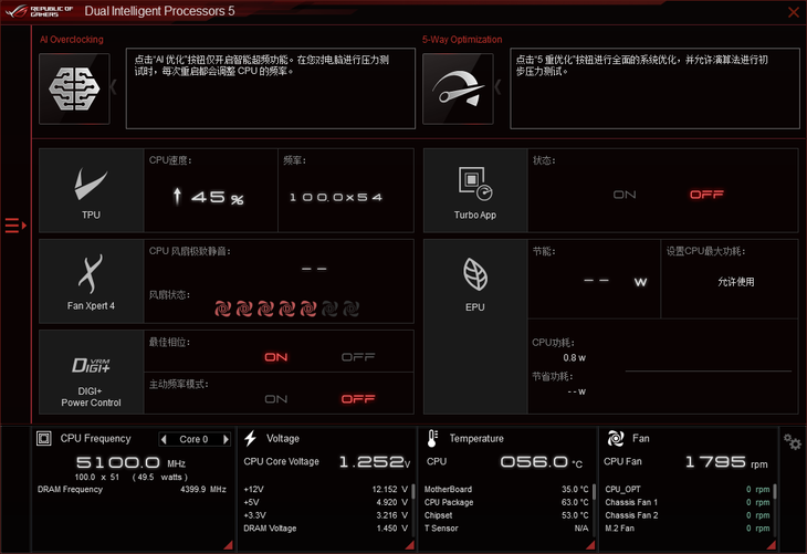 这款高端主板搭载了华硕优选的“AI智能超频”,该功能可快速智能评估处理器超频潜力与系统散热条件,准确预测超频电压、频率的性能调校建议,快速提供超频专家一般需要耗费数日手动调整才能达到的超频效能,轻松达到更高性能,相当简单易用,即使是超频初学者也能够轻松上手。