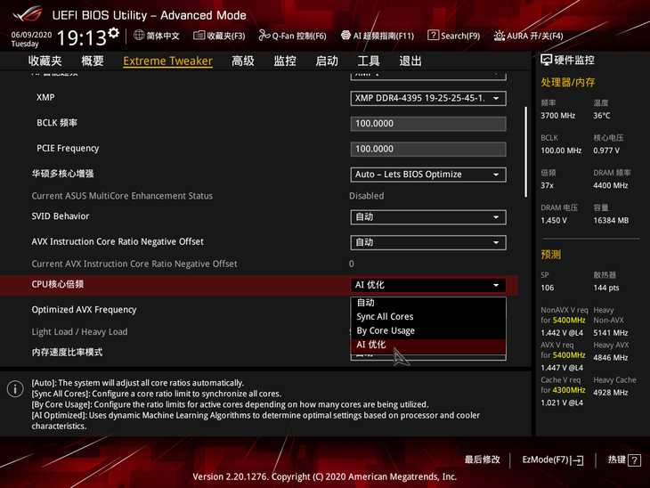 在主板BIOS中找到“CPU核心倍频”选项,然后选择“AI优化”设置,AI智能超频在系统重启后即可自动开启。
