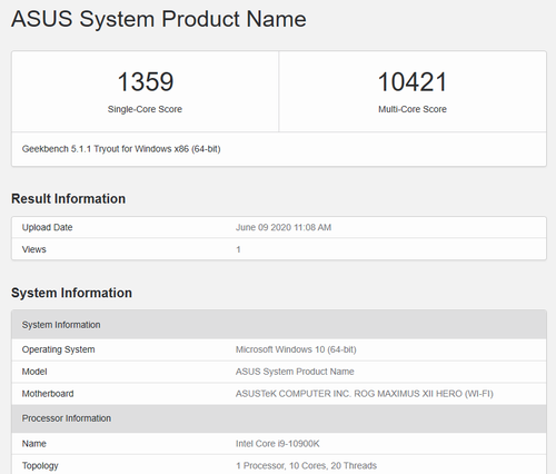 笔者为这款主板搭配了旗舰级的酷睿i9-10900K处理器,用以测试AI智能超频功能。