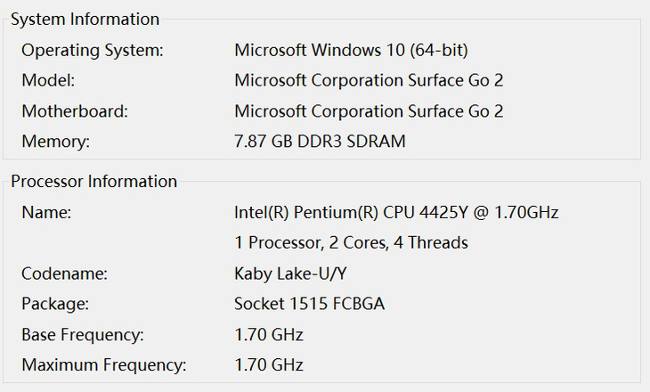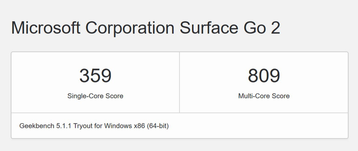 Surface Go 2有两种处理器版本,包括奔腾4425Y和酷睿m3,本次测试的是奔腾4425Y,我们使用Geekbench对其进行测试,看一下Surface Go 2的得分情况。