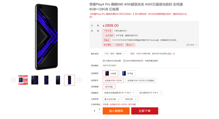 荣耀Play4 Pro 8GB+128GB目前下单购买可享受立减200元优惠,到手价只需2699元,还可以享受12期免息,想要购买的朋友赶紧关注一下。