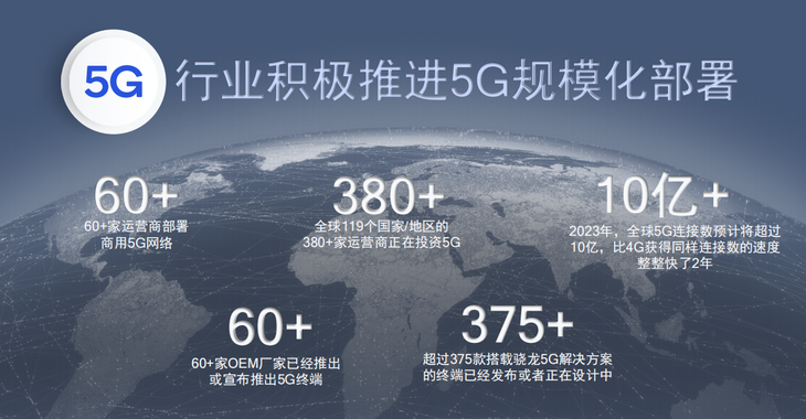 随着5G商用化的推进,今年5G已经进入到规模化部署阶段,目前全球有119个国家或地区的超过380家运营商正在投资5G,预计2023年,全球5G连接数预计将会超过10亿。