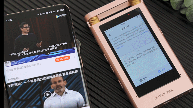 接下来,我们来测试中英文边录边译功能,同样的,我还是使用手机播放了一段视频,一段TED演讲的英文演讲片段。从边录边译的效果来看,速度方面几乎与中文转写没有太大区别,也差不多都是同步进行的;而在中英翻译的准确性上,与视频中的中文字幕对比,讯飞智能录音笔SR501给出的翻译也基本一致,能让人完全明白这一大段英文内容说的是什么。此外,在外语语种转写上也支持了7种语言如、英语、日语、韩语、俄语、法语、越南语、西班牙语。这对于在一些外语会议、培训的工作场合可大大提高效率。