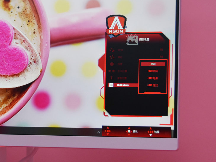 这款显示器提供了HDR图片、HDR电影、HDR游戏这三种HDR模式。玩家可以到“主菜单——图像设置——HDR Mode”里面进行选择。