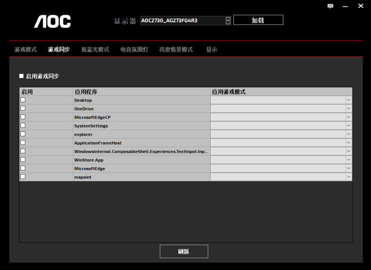 在“游戏同步”界面下,玩家可以为相应的程序设置相应的显示模式。
