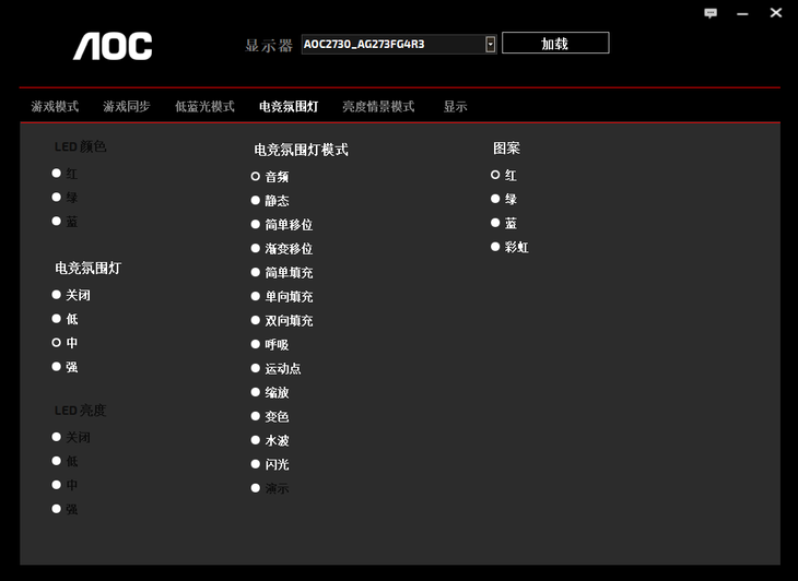 在“电竞氛围灯”界面下,用户可以随心设置灯效,选择的模式非常多。