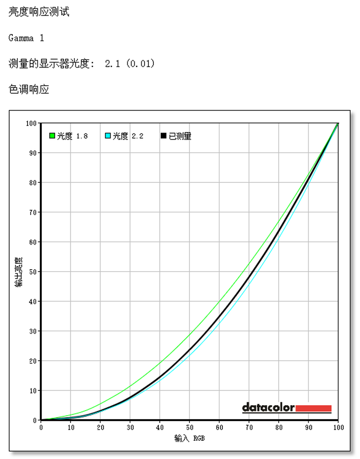 测试小结:这款显示器实际的伽马曲线和理想值比较接近,表现较好。