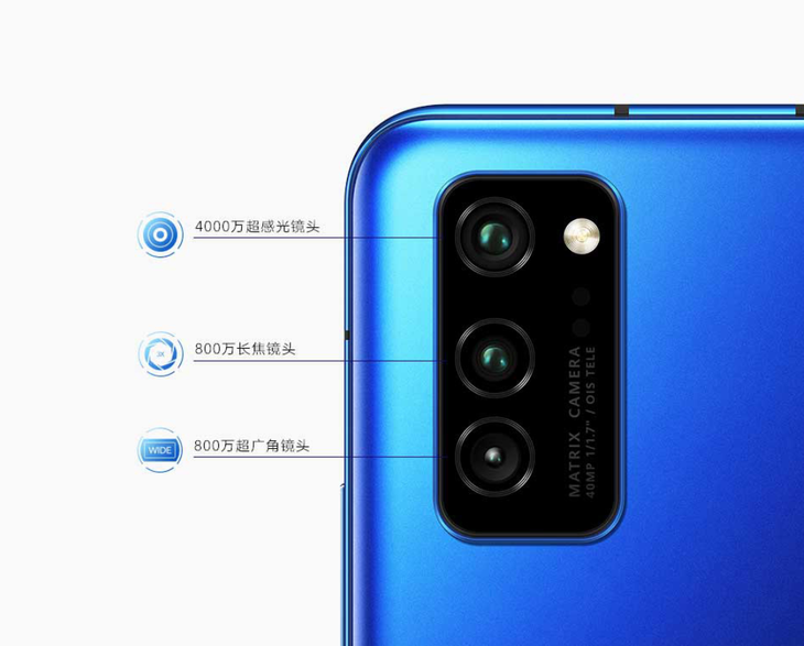 通过800万像素长焦镜头可实现3倍光学变焦、5倍混合变焦,高可达30倍数字变焦,覆盖到更多常用焦段,拥有更多的拍照乐趣。荣耀V30内置一块4200mAh大容量电池,支持40W有线超级快充。
