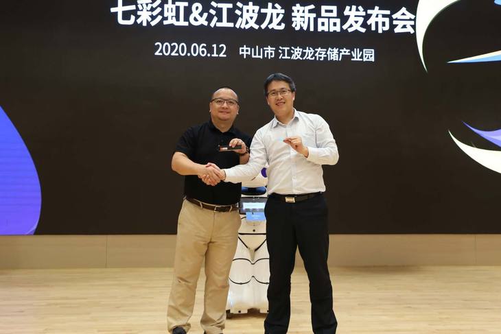 6月12日,七彩虹联合江波龙在江波龙中山存储产业园召开新品发布会,七彩虹董事长万山与江波龙董事长蔡华波莅临现场参加本次发布会,同时到场的还有七彩虹和江波龙的各部门代表。