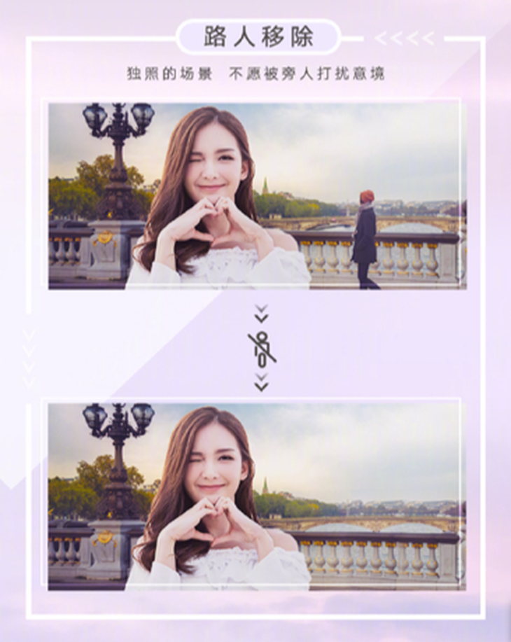 而第三项路人移除,则对爱旅游爱街道的用户特别友善。基于AI计算,荣耀30系列在动态照片拍摄下,会提前记录快门帧前后的照片,智能识别无遮挡画面替换进表情最美的一帧画面里,从而达到将背景乱入的移动路人自动消除,十分强大。