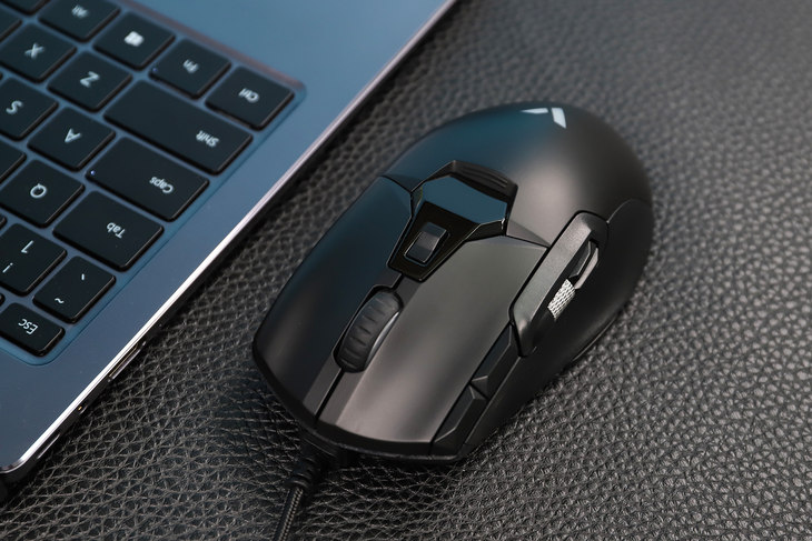 雷柏V330外观设计有着明显的电竞风,丰富硬朗的线条,辨识度高。鼠标尺寸为125×68.5×40mm,在主流鼠标中,尺寸算是比较大的,适合中大手型的朋友,如果平常习惯趴握使用,体验会更好。