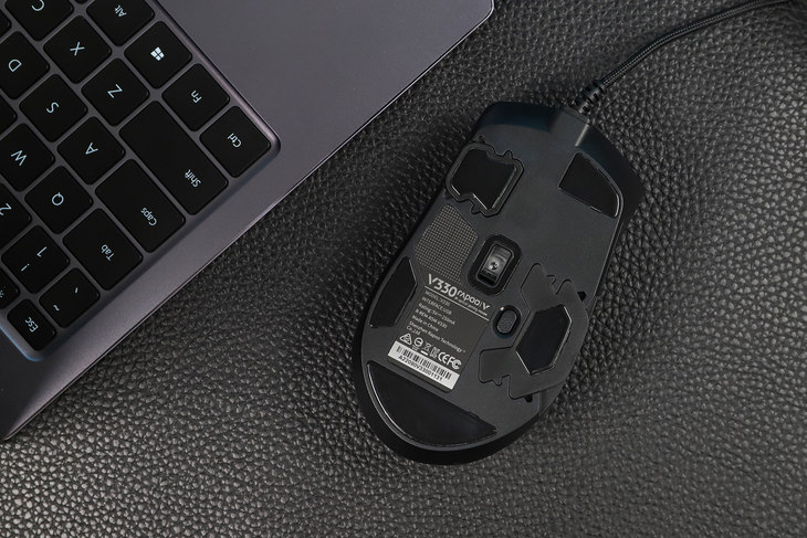 在实际使用上,雷柏V330能提供舒适的手感,对于手大的用户来说,很适合这种体型偏大的鼠标。趴握姿势可以获得很好的支撑,手部放松舒适,搭配鼠标表面细腻的触感,手感出色。