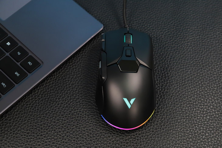 雷柏V330在滚轮处、Logo上、鼠标尾部这三个区域都配备了约1680万色的RGB背光灯,可以通过驱动自定义灯光效果。