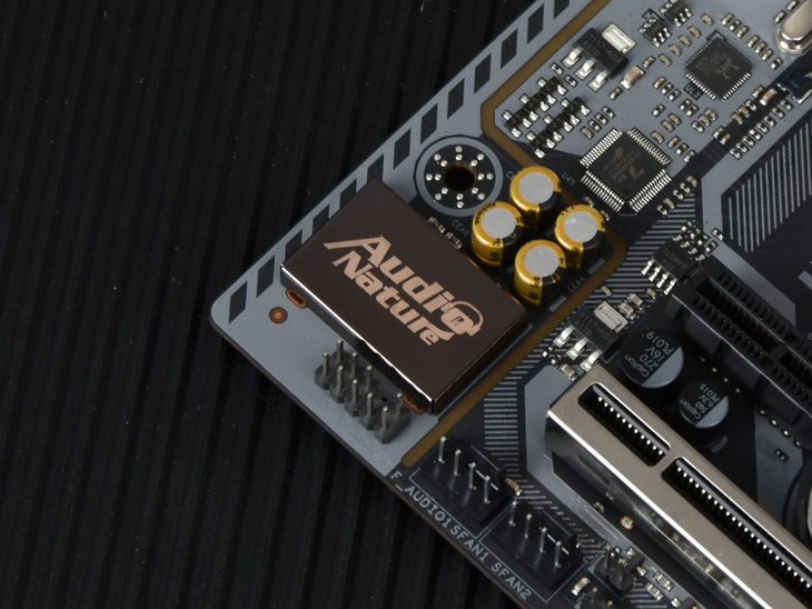 音频芯片+HIFI音频芯片保护罩,专业Nichicon音频电容,搭配HIFI高清音频分割线,有效屏蔽环境对音频干扰,保持音频信号的完整,有效隔绝主板上复杂线路的高频信号噪音干扰带来更优质的音效,更震撼的游戏体验。