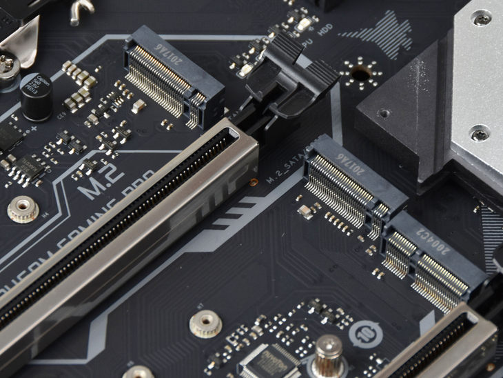 M.2接口部分同样采用大面积的寒霜散热装甲,有效增大与空气接触面积,增强散热效果,降低M.2固态硬盘温度,带来更好的存储体验。