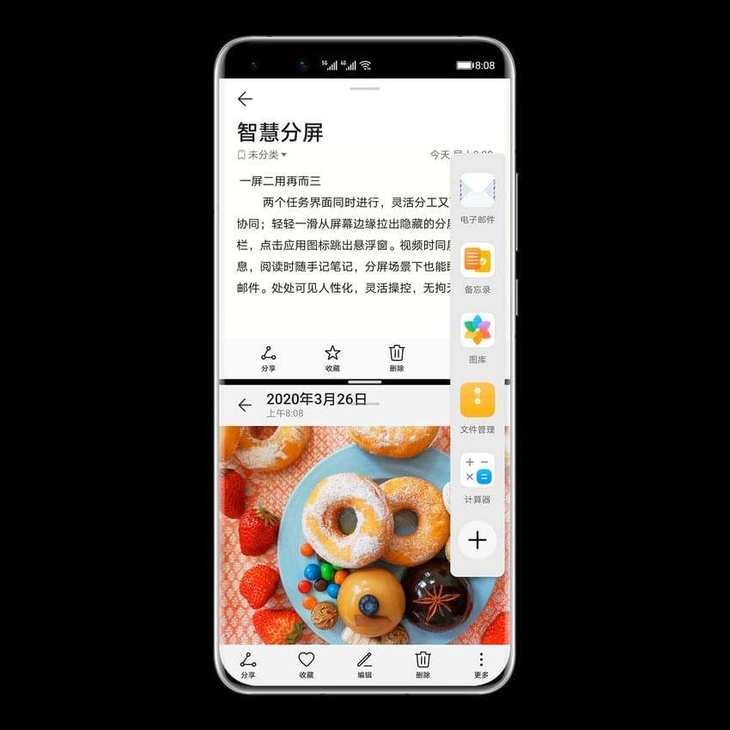 除了人有我优的配置以外,华为P40系列在EMUI系统层面还有很多提升娱乐与办公效率的功能。比如智慧分屏功能就能让用户一边上网课、开会或者浏览网页信息的时候,一边记笔记进行记录。更好用的悬浮窗也能让你在一个界面完成不同应用的操作。这些都有助于提升用户的学习工作效率。如果配合华为笔记本使用,还能实现一碰传、多屏协同、HUAWEI Share等生态内的功能,这些体验也是其他品牌的产品所没有的。