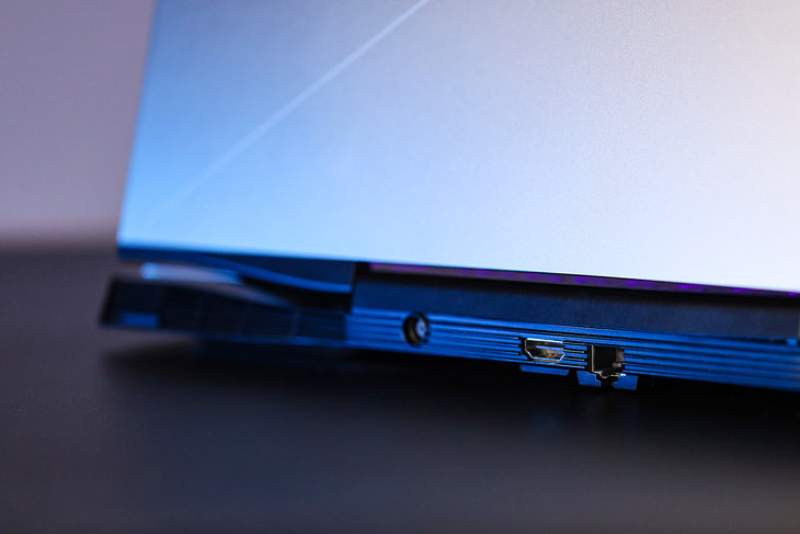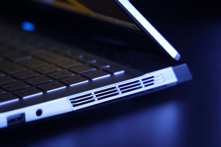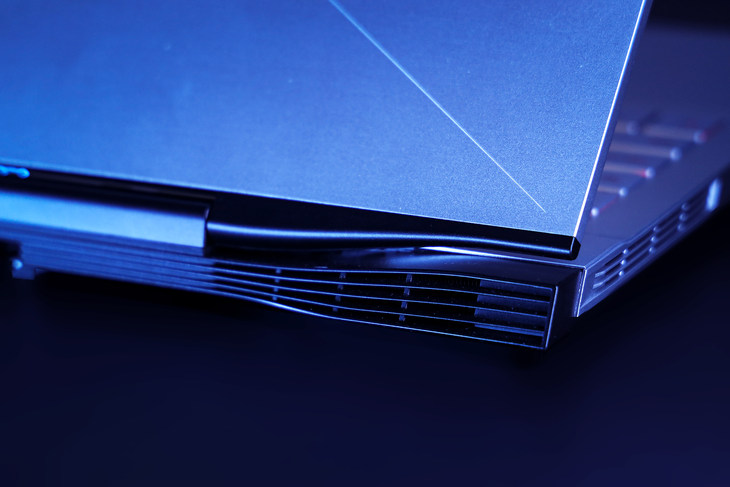 散热方面,这款游戏本设计了六处出风口,键盘面正前方两处,机身左、右两侧各一处,机身后部还拥有两处。为了增添这款游戏本的颜值,机身后部两处排风口均采用了“魂动设计”造型,让这款游戏本看上去更具视觉冲击力。