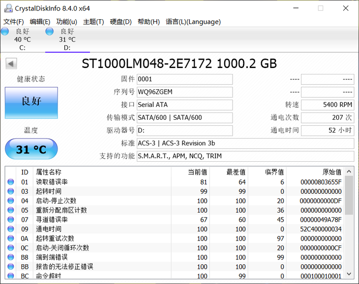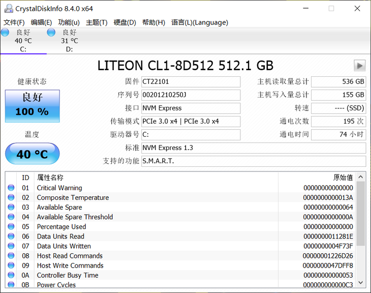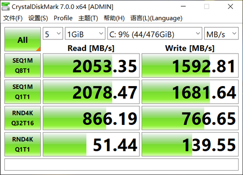 由于采用的是PCEe 3.0 x4传输模式,因此这块固态硬盘有着不俗的性能表现。根据CrystalDiskMark这款测试软件的成绩来看,这款固态硬盘拥有超过2.0GB/s的顺序读取速度,以及超过1.5GB/s的顺序写入速度。