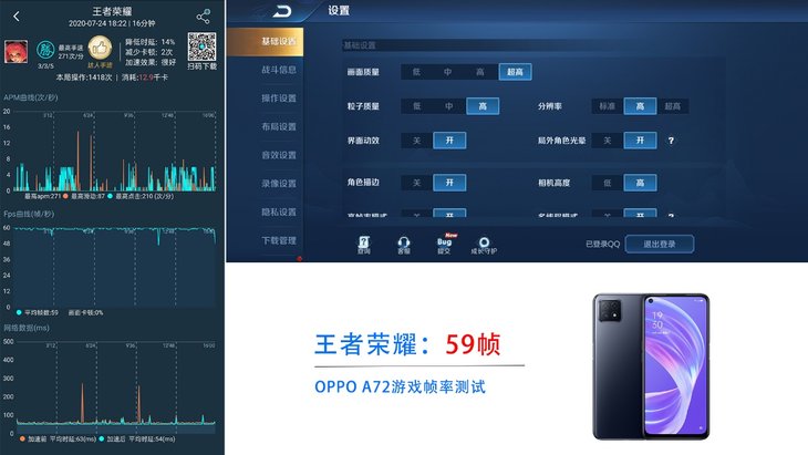 OPPO A72内置HyperBoost 3.0,通过智能预测手机状态,减少游戏中的卡顿问题。另外,还通过系统级的深度优化,改善手机触控性能,更充分发挥硬件性能。在实际性能体验上,我们选择了《和平精英》、《王者荣耀》两款比较有代表性的游戏进行测试。