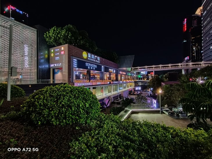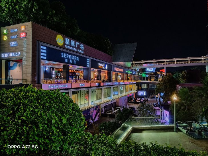 值得一提的是,OPPO A72在超广角模式下也支持夜景模式。超广角镜头视野更开阔,画面整体观感也保持得比较好。